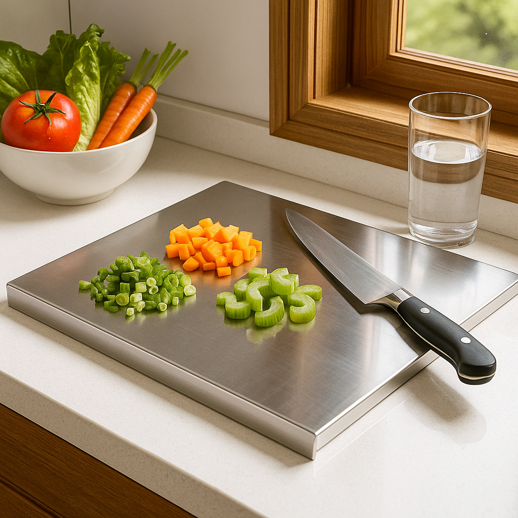 Schneidebrett aus Edelstahl mit Rand – Hygienisches und Langlebiges Küchenbrett